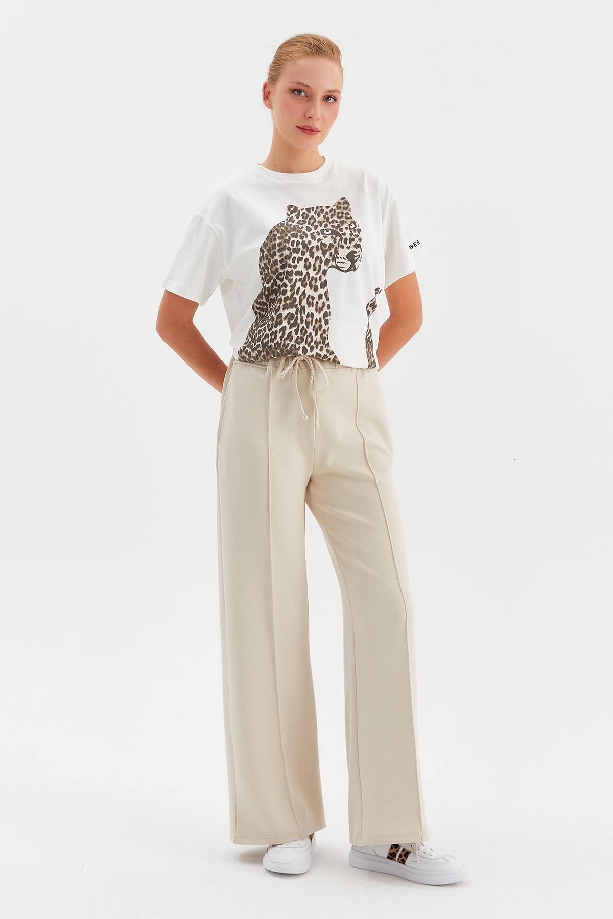 Beli Lastikli Biyeli Pantolon Kaplan Desenli Tişört