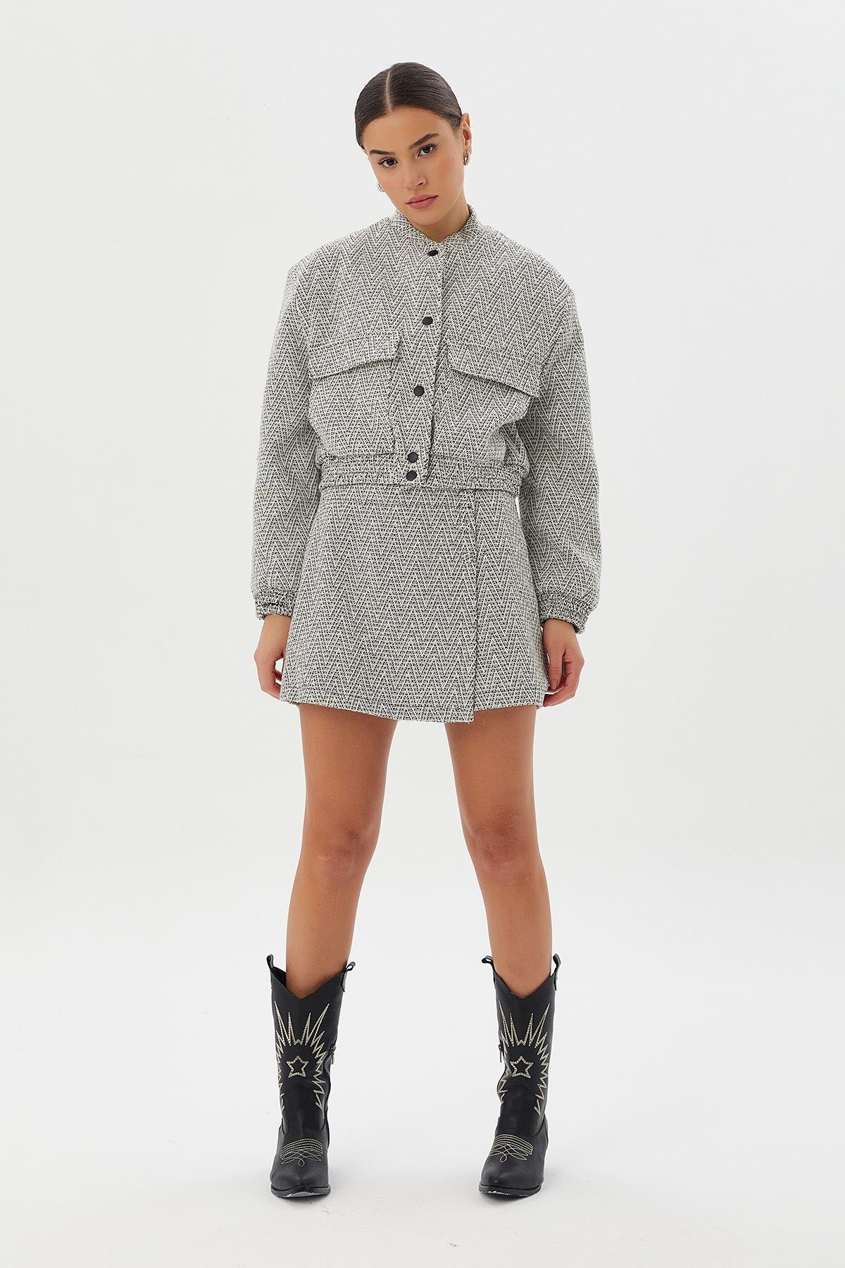 Beli ve Kolları Lastikli Zikzak Desenli Kısa Mont (51292_Ekru)