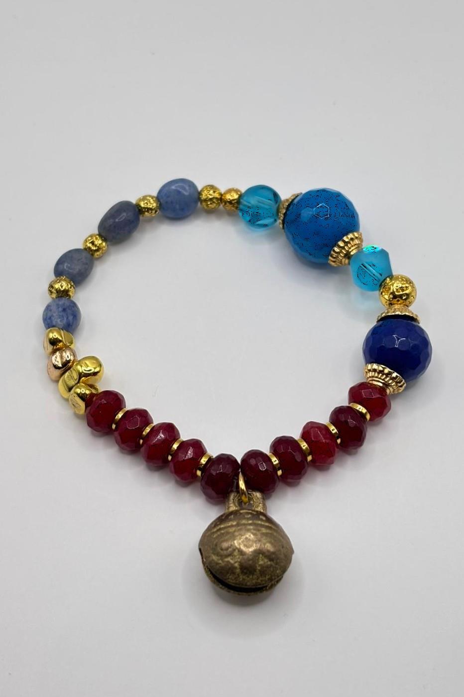 Çan Charmlı Mavi Doğal Taş Bileklik