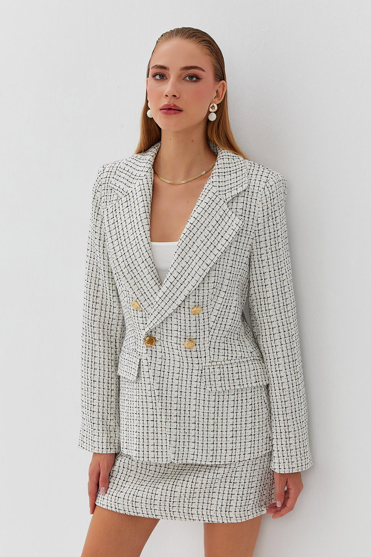 Ürün Açıklaması Bele oturan, kruvaze ceket.