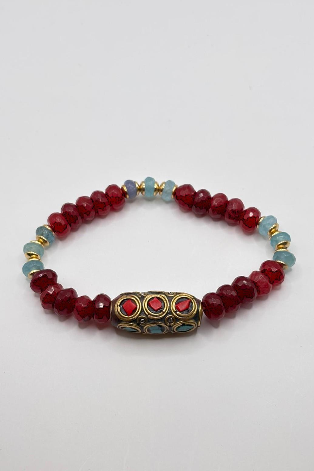 Charmlı Doğal Taşlı Bileklik (K4018ES_Bordo)