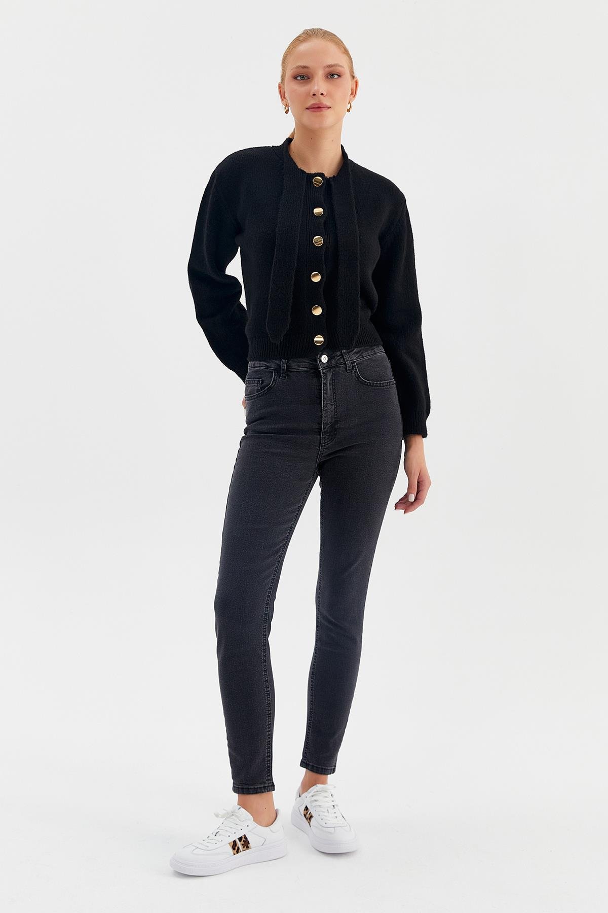 Dar paça, orta yükseklikte bel, skinny jean kadın pantolon.