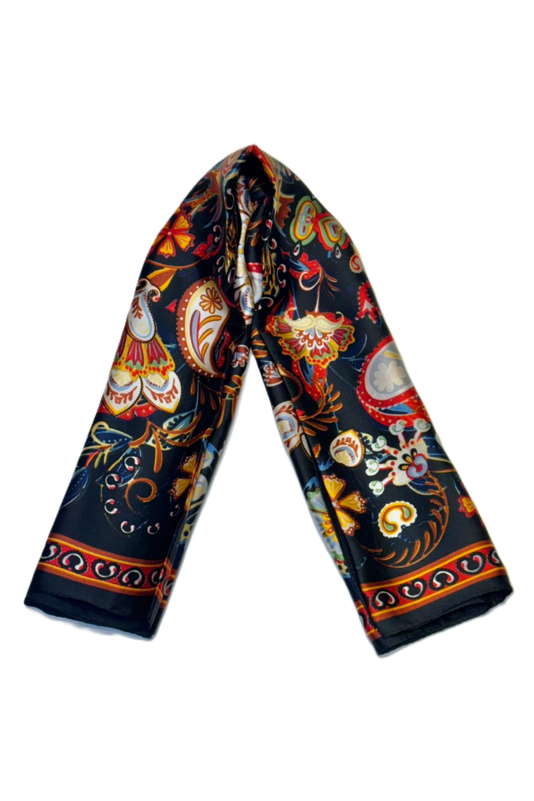 70*70 boyutunda desenli saten fular.