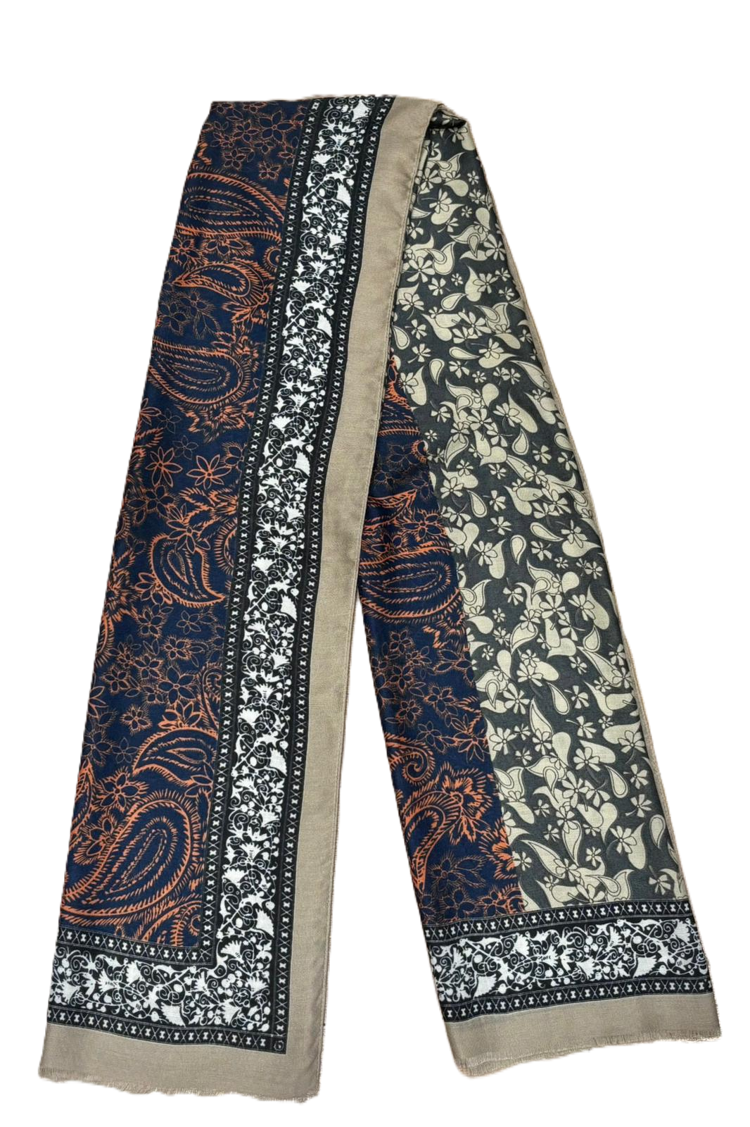 Desenli Ucu Püsküllü Şal (15600NW_Vizon)