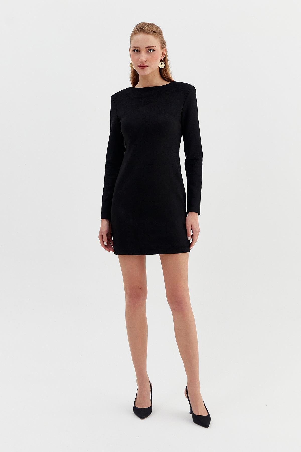 Düz Kesim Güderi Elbise (10352_Siyah)