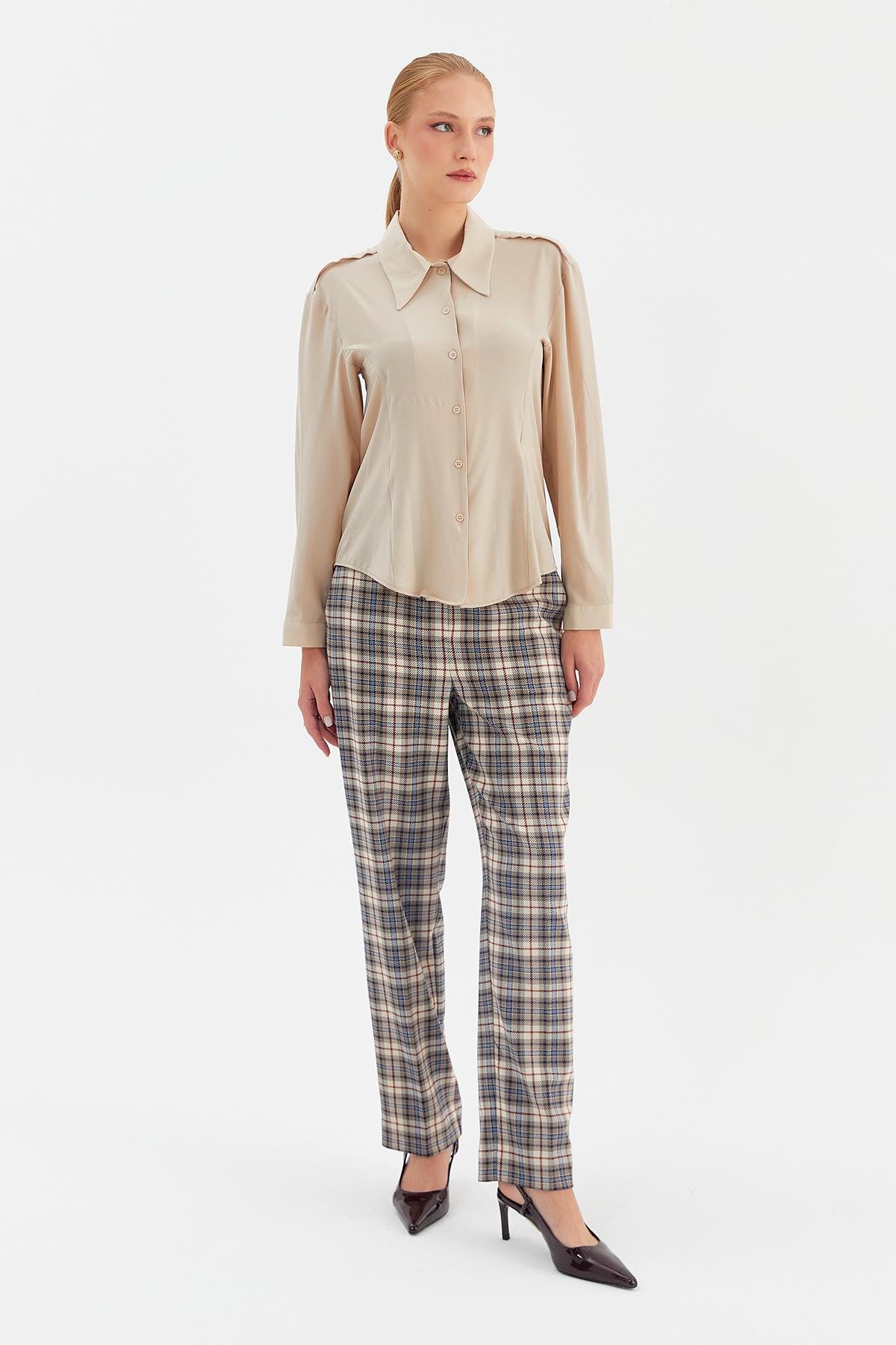 Ekose Boru Paça Pilesiz Pantolon (MP657_Vizon)