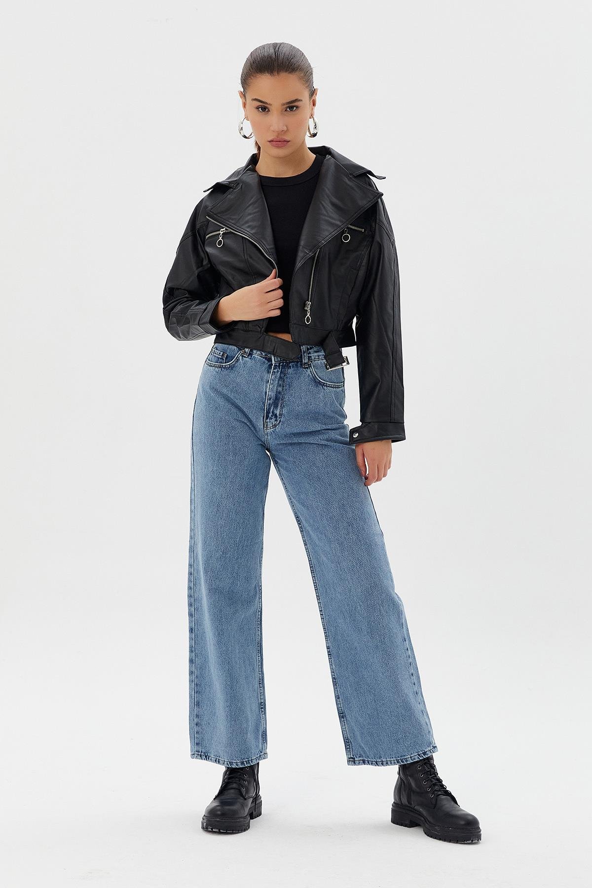 Fermuarlı Kısa Deri Ceket (54023_Siyah)