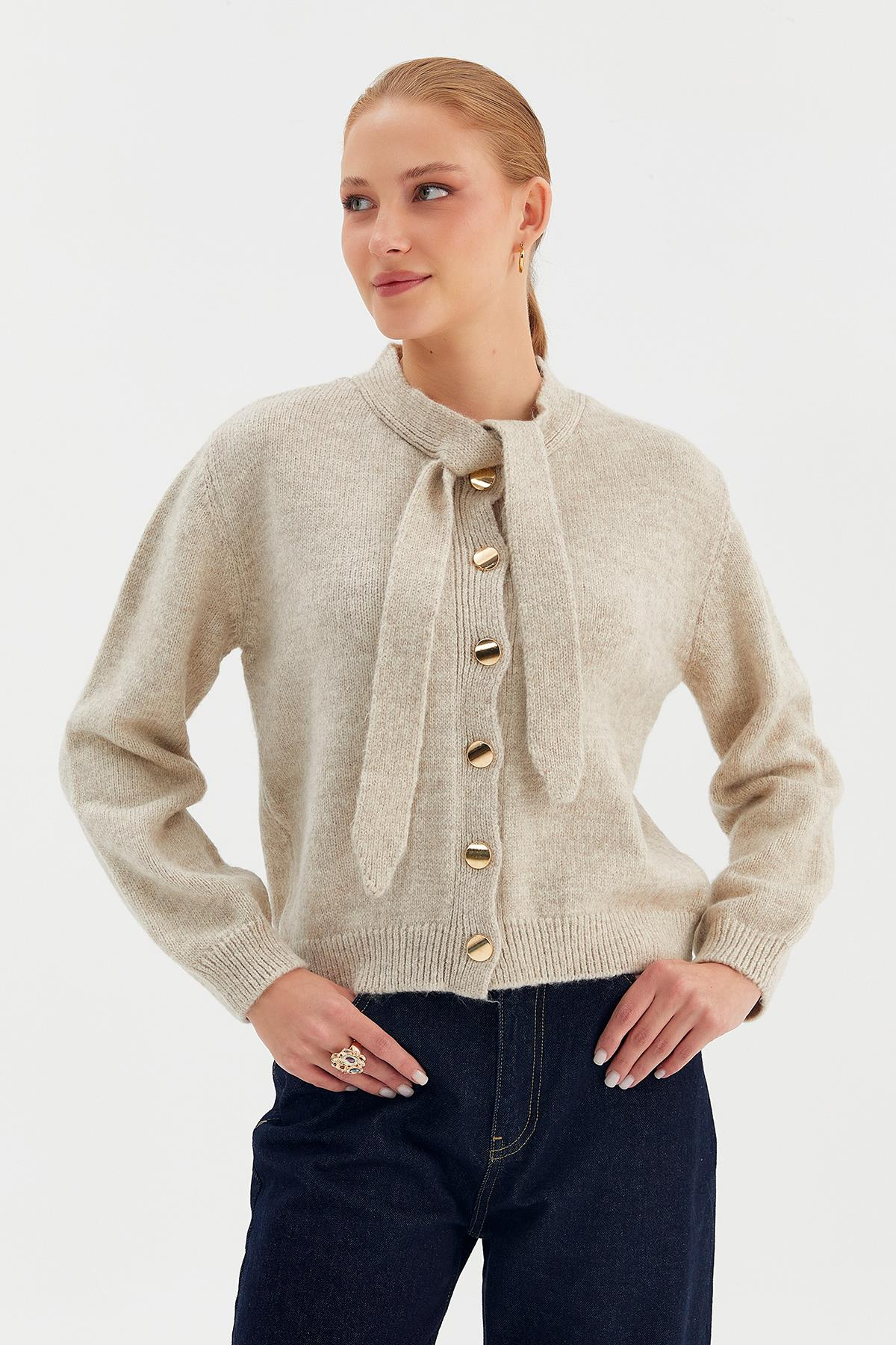 Ürün Özellikleri Yakası kuşak bağlamalı, fitilli triko.