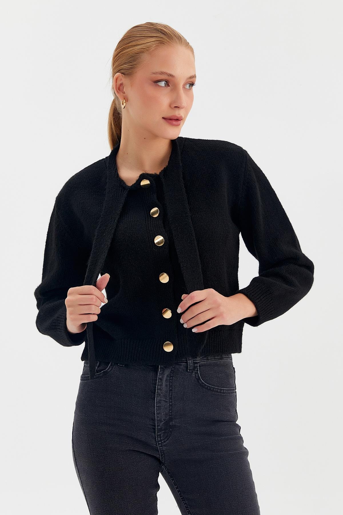 Ürün Özellikleri Yakası kuşak bağlamalı, fitilli triko.