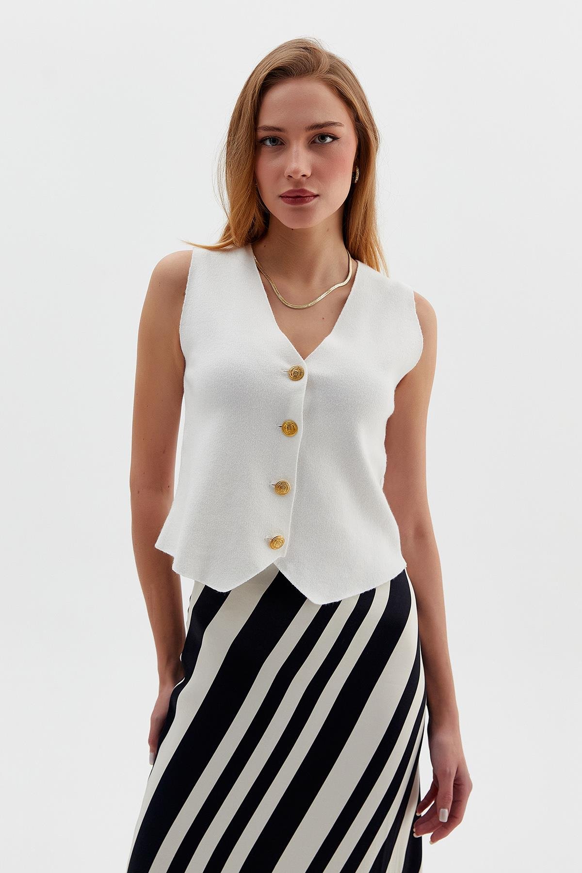 4 düğmeli, triko yelek.