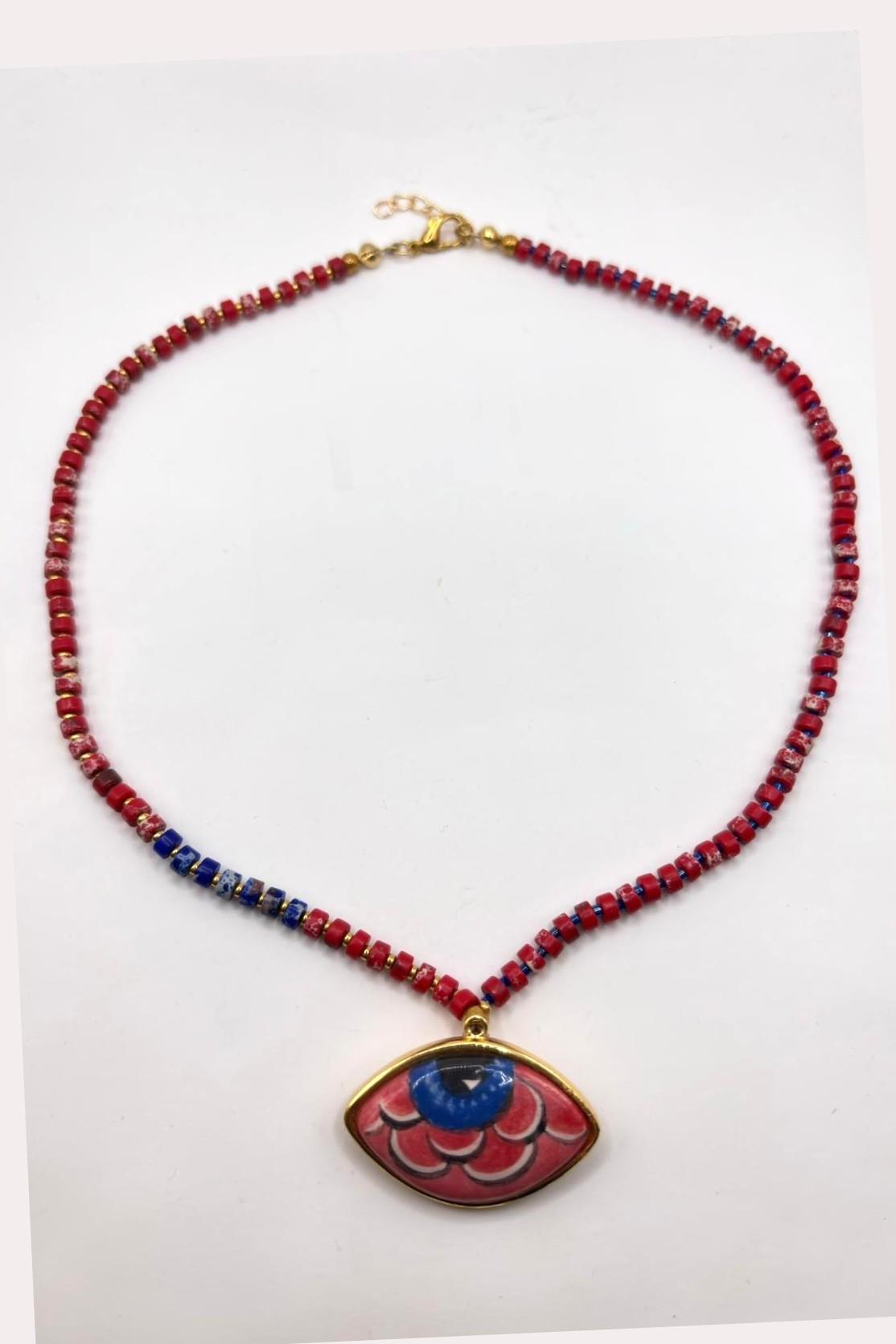 Göz Seramik Kolye (K3002ES_Kırmızı)