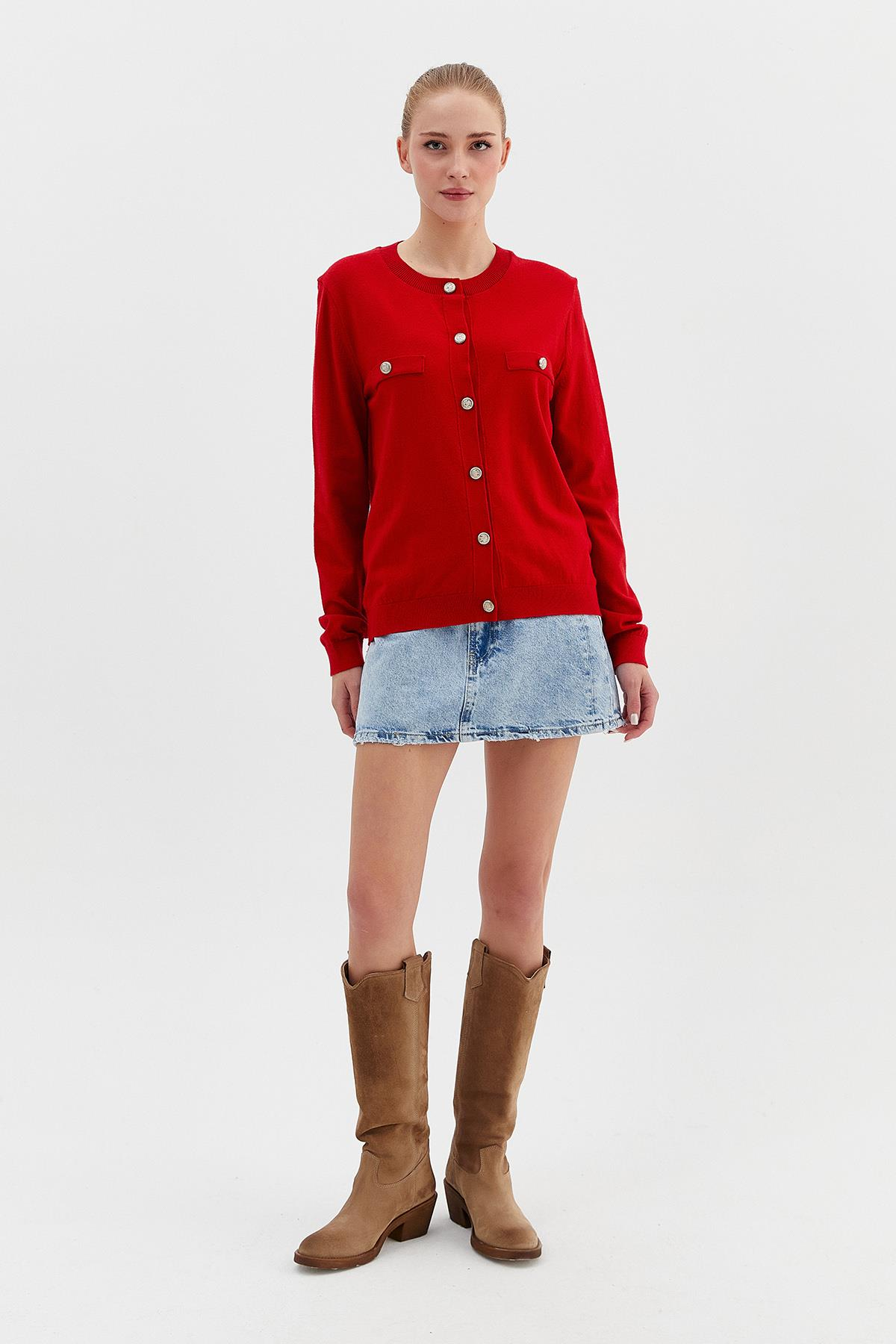 00140H Gümüş Düğmeli Cepli Triko Hırka