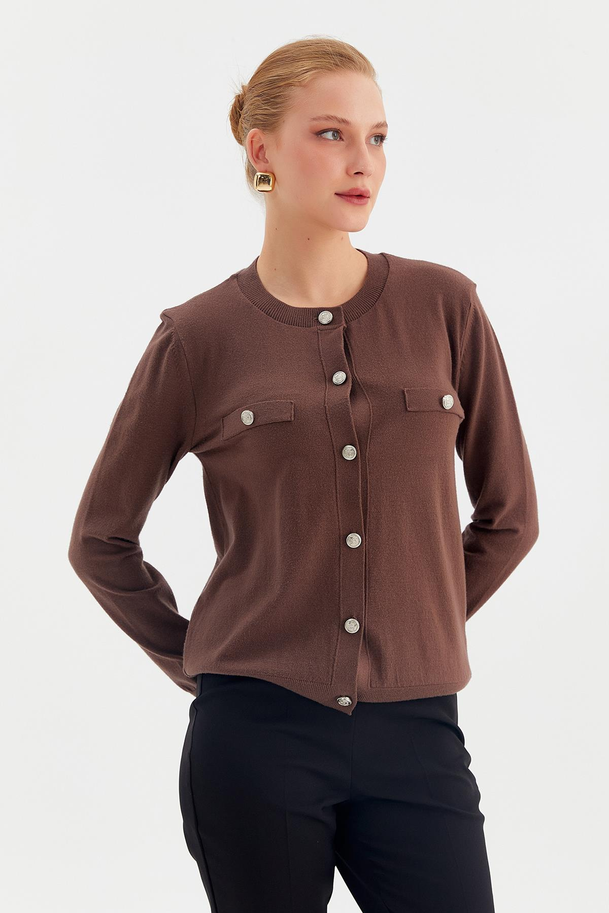 00140H Gümüş Düğmeli Cepli Triko Hırka