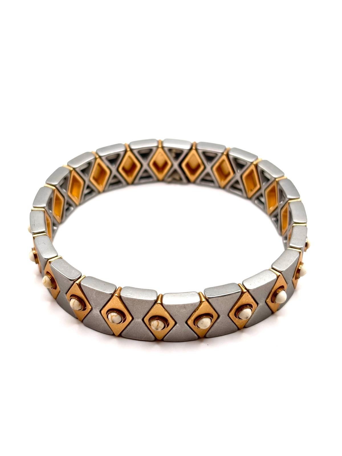 İnci Detaylı Mat Metal Esnek Bileklik (K4024ES_Gri)