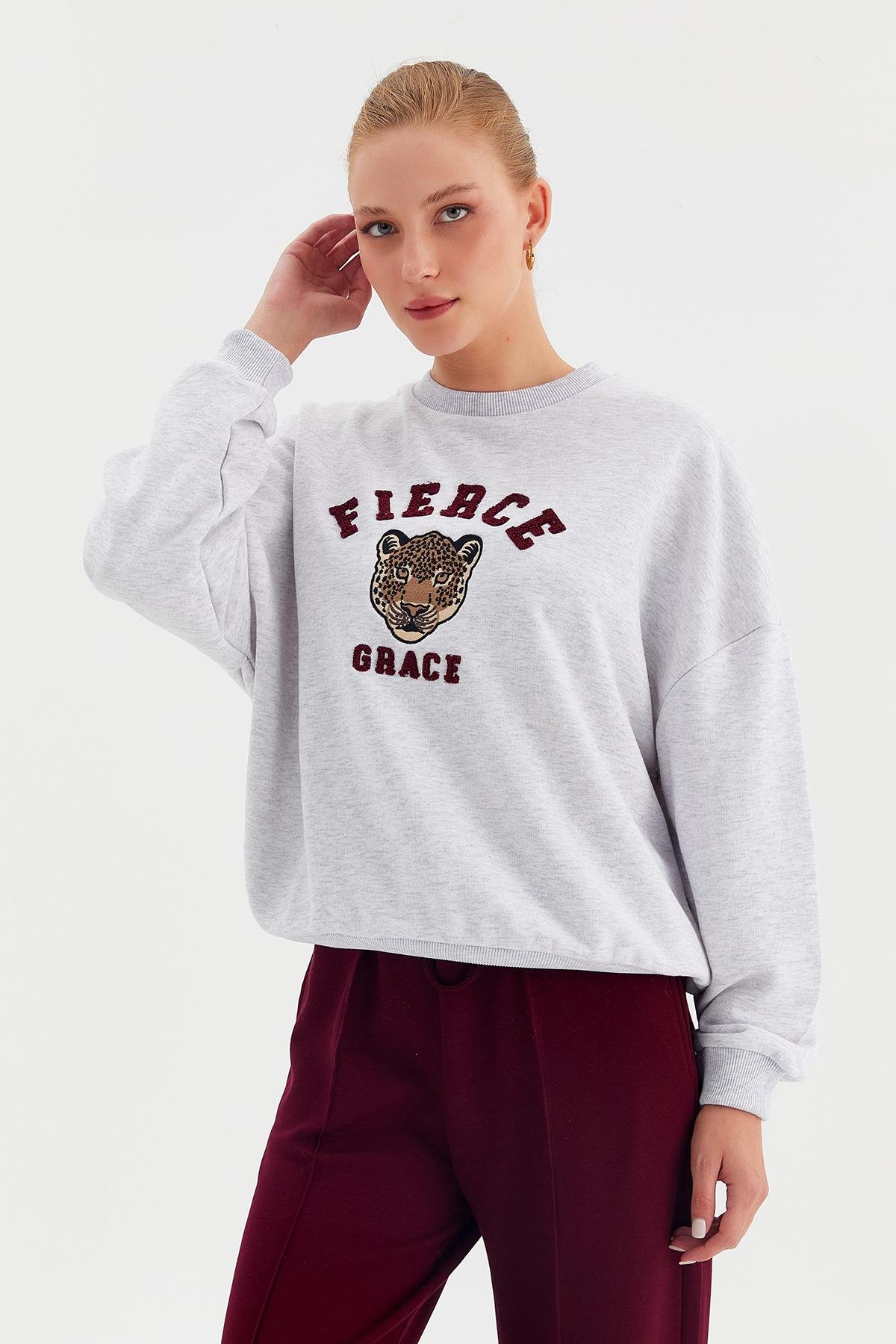 Ürün Özellikleri Kaplan figürlü, bisiklet yaka, şardonlu sweatshirt.