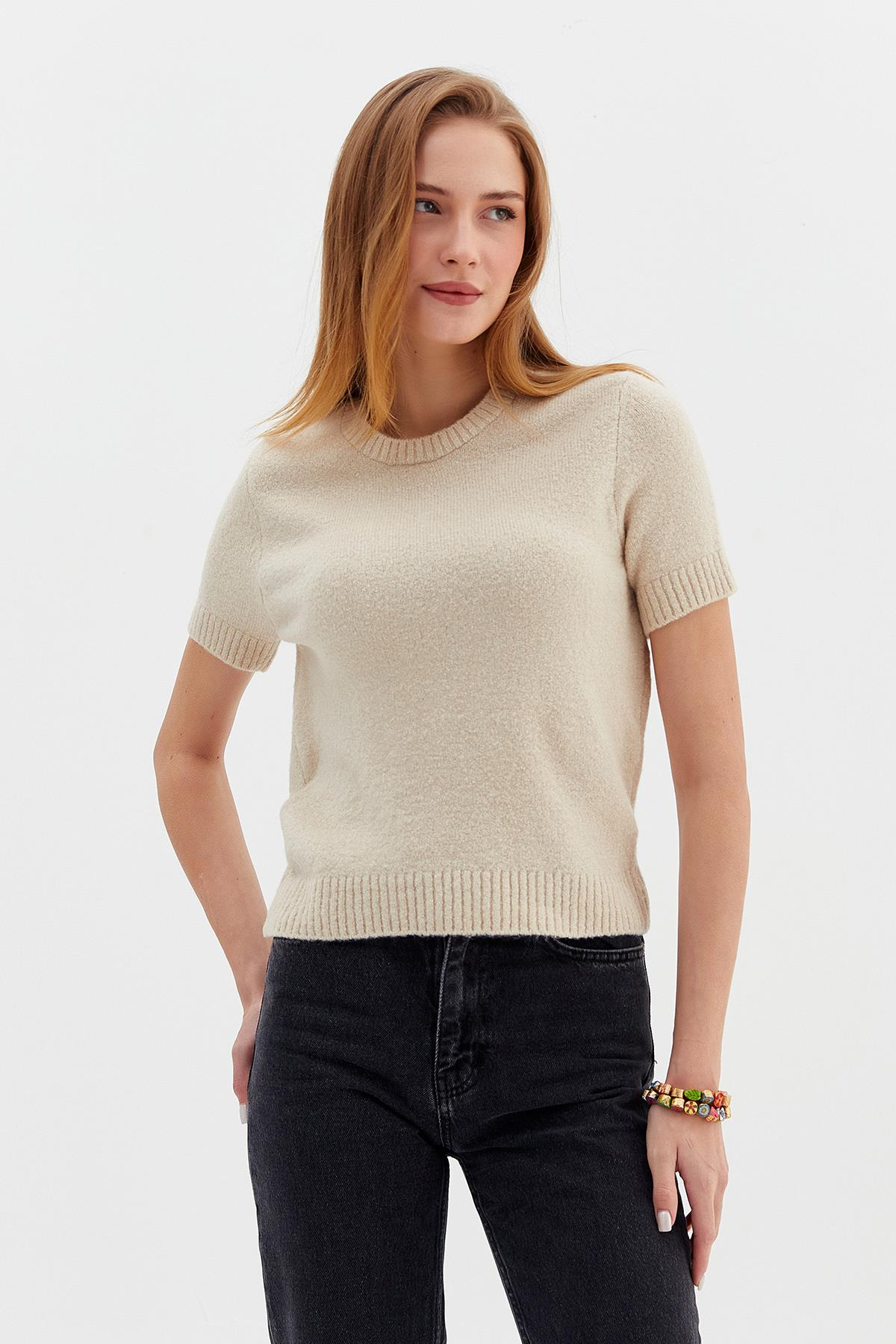 Kısa Kollu Bisiklet Yaka Triko (16623_Taş)