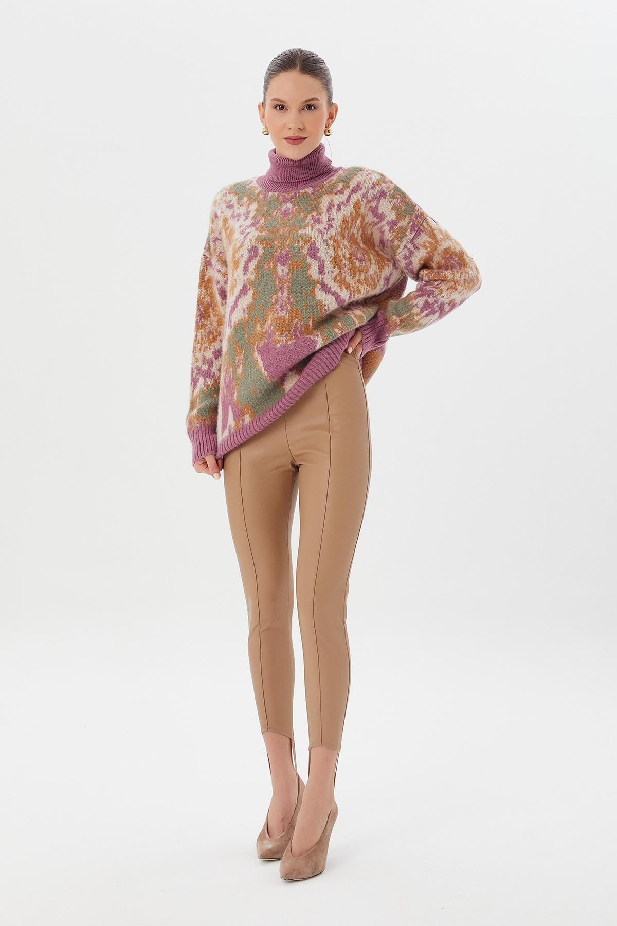 Ürün Açıklaması Beli ve paçası lastikli yapısıyla konfor sunan, modern ve şık deri tayt.