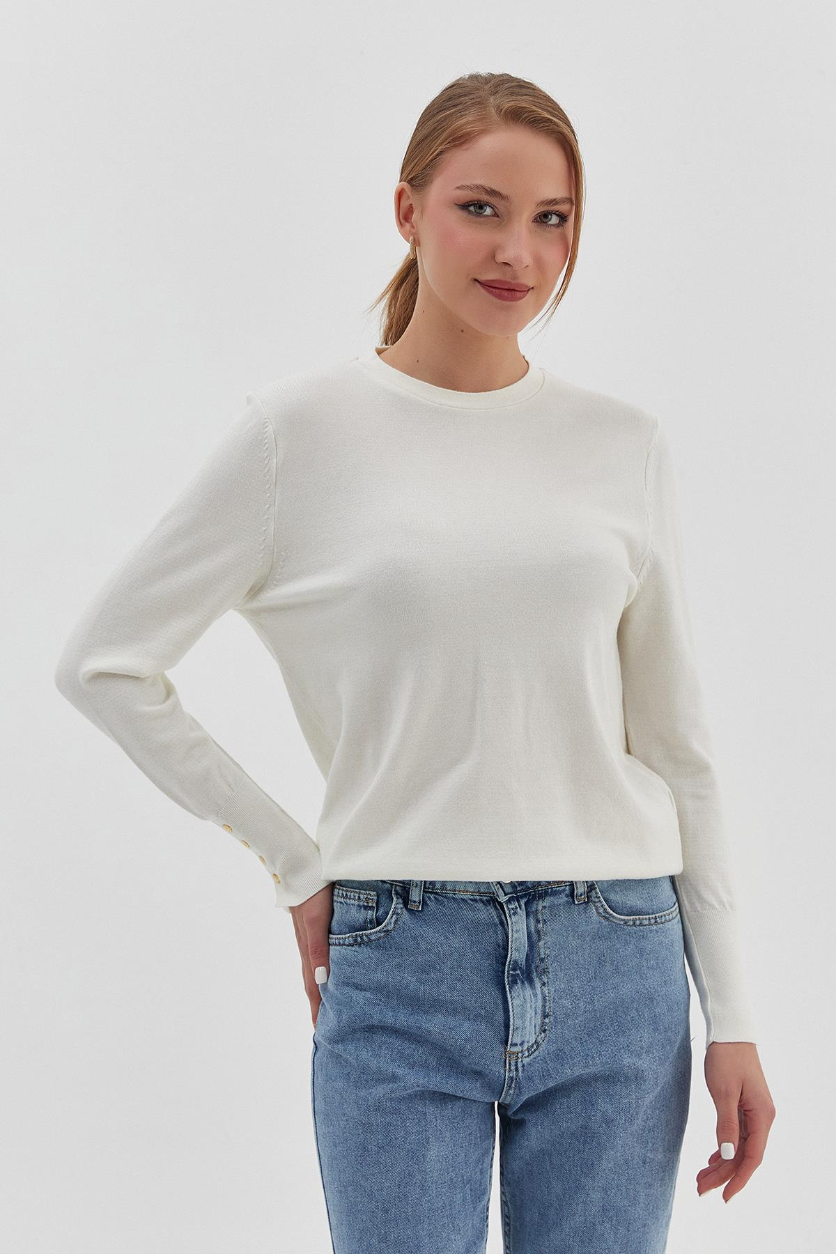 Manşette düğme detaylı, bisiklet yaka basic triko.