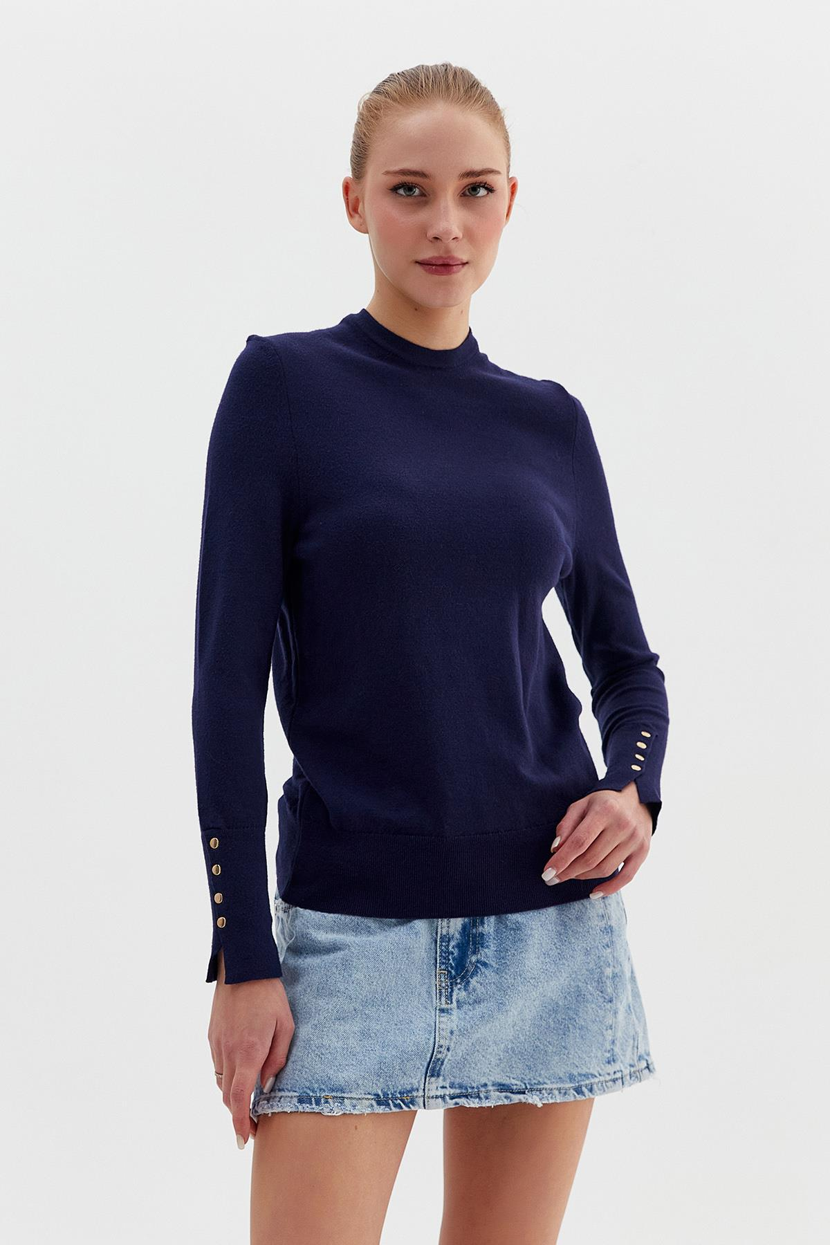 Manşette Düğme Detaylı Bisiklet Yaka Triko (10282_Lacivert)