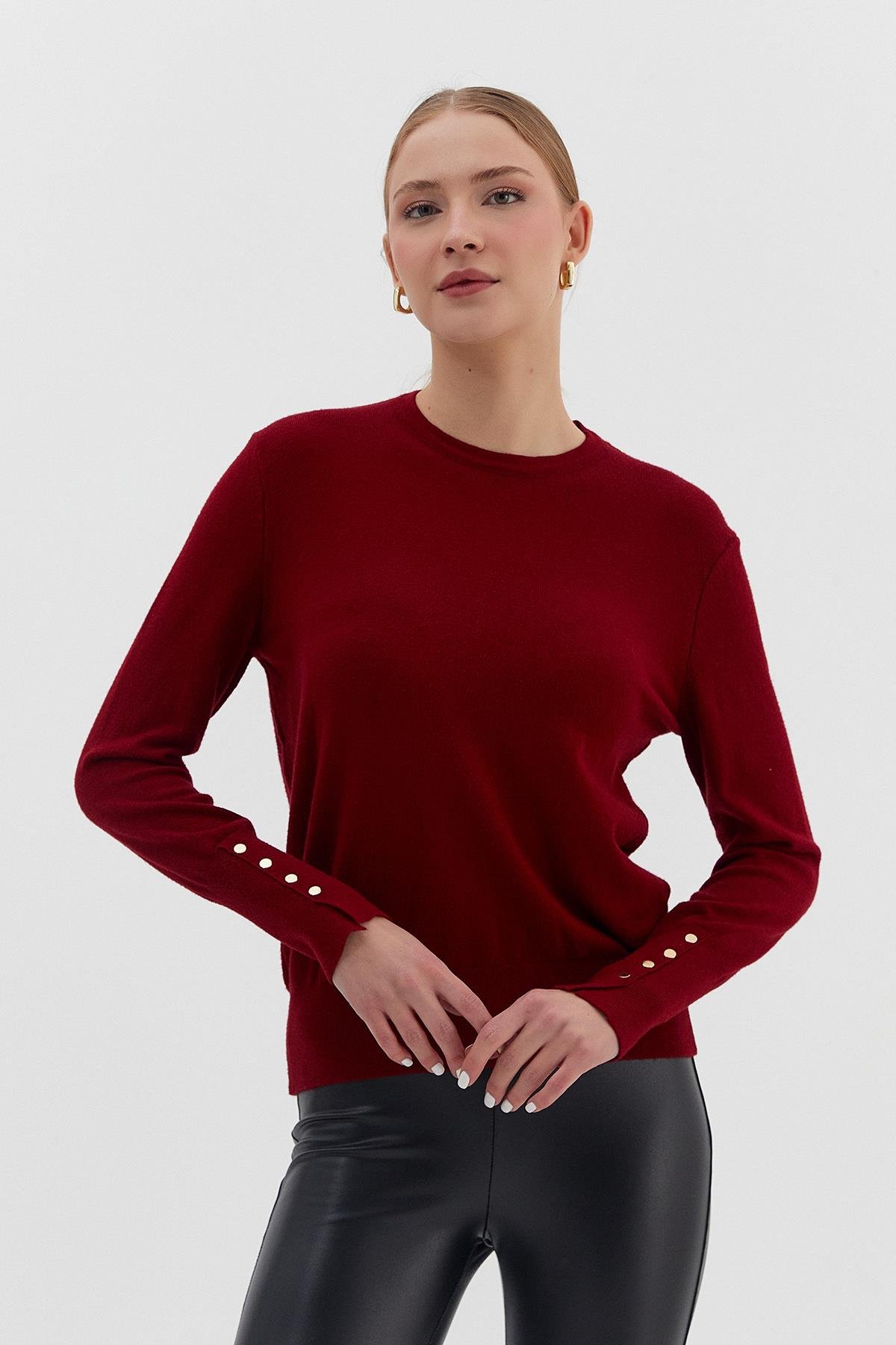 Manşette Düğme Detaylı Bisiklet Yaka Triko (10282_Bordo)
