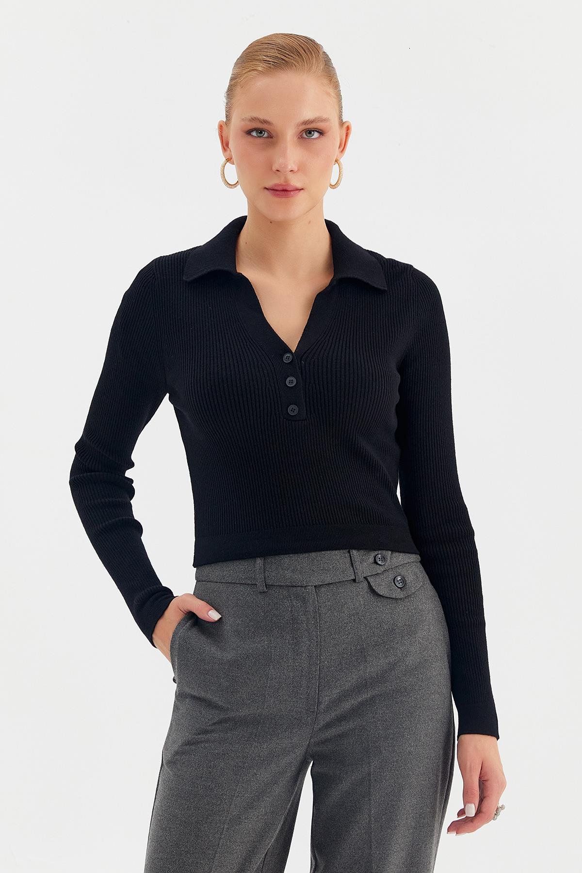 41112 Patlı Polo Yaka Kazak
