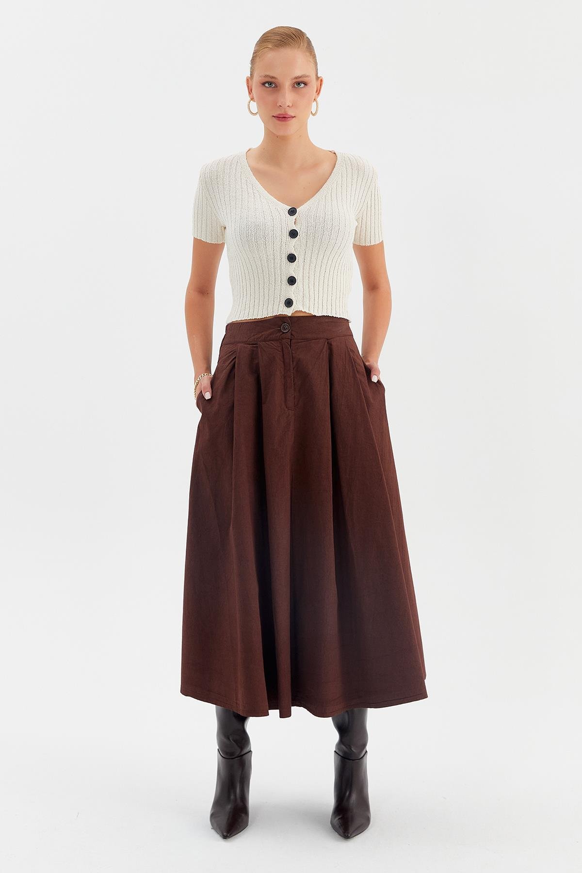 Pileli Kloş Etek Kısa Kollu Slim Hırka