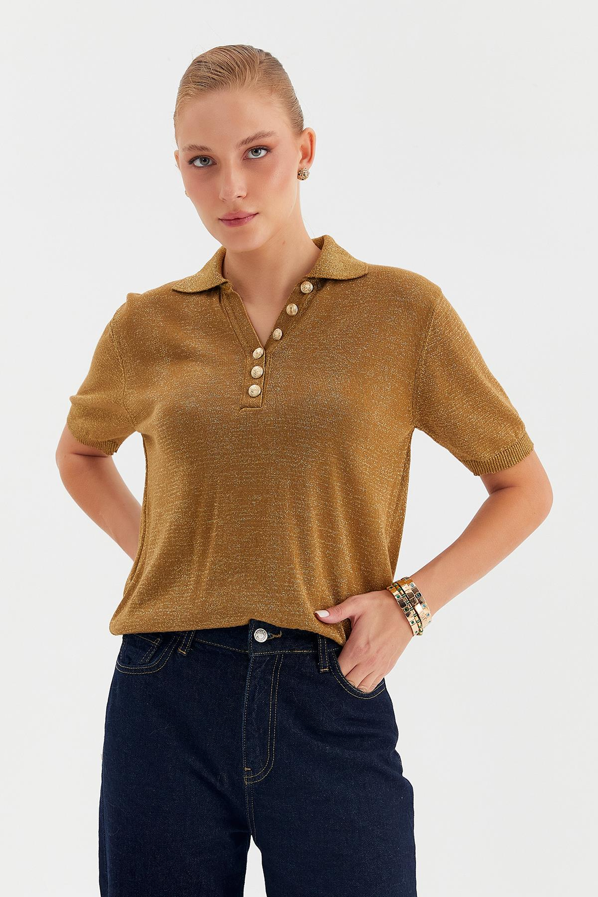 51111 Polo Yaka Simli Kısa Kollu Triko