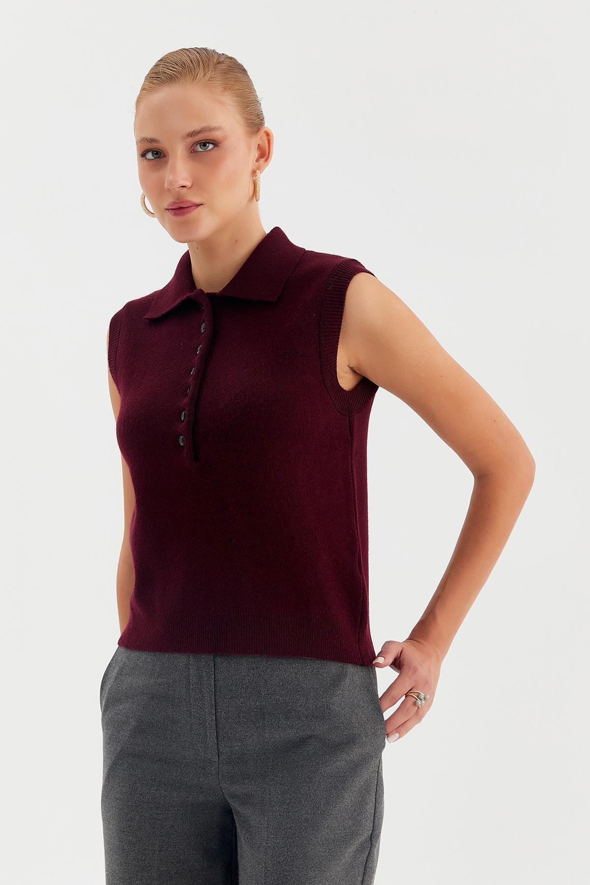 Polo Yaka Düğmeli Kolsuz Triko (51105q_Bordo)