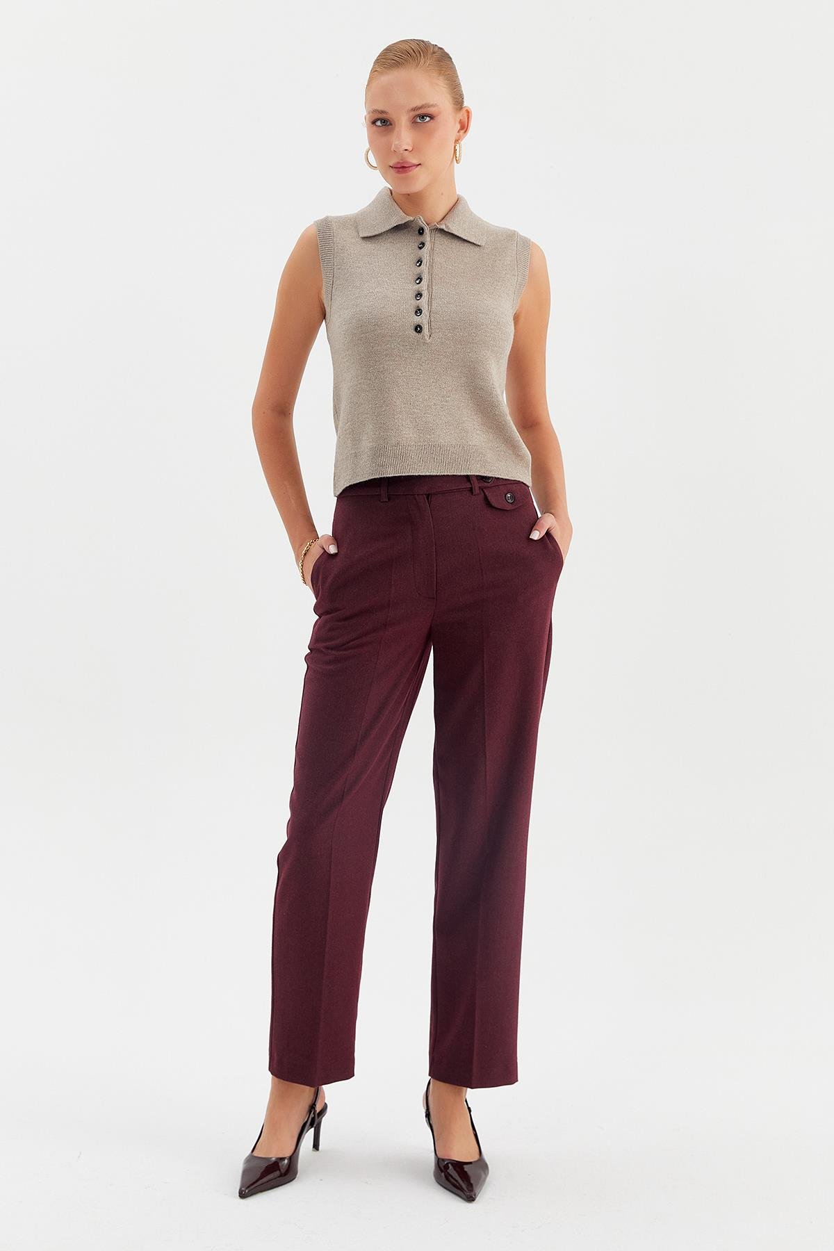 Polo Yaka Düğmeli Kolsuz Triko (51105q_Vizon)