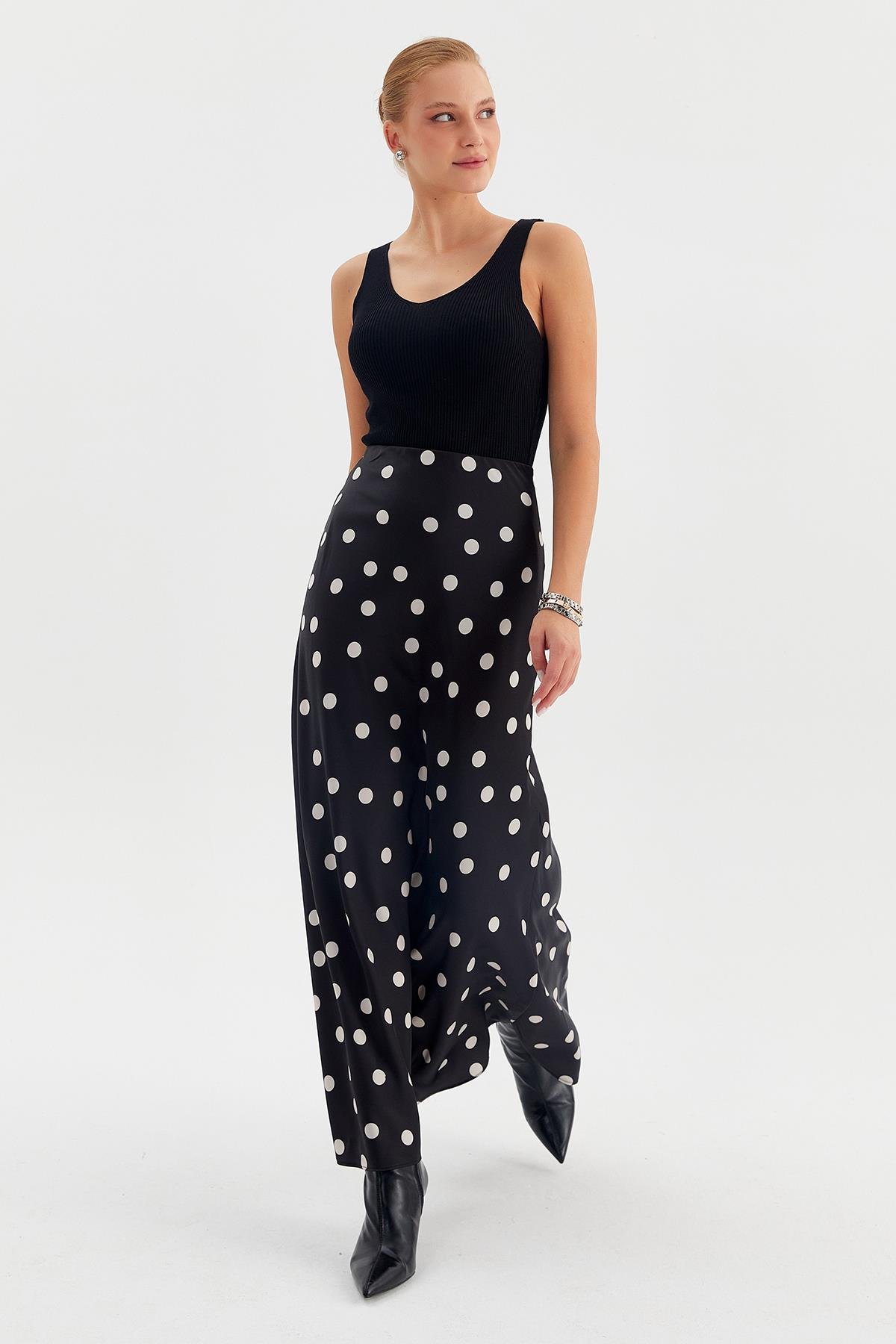 39141 Puantiyeli Maxi Saten Etek