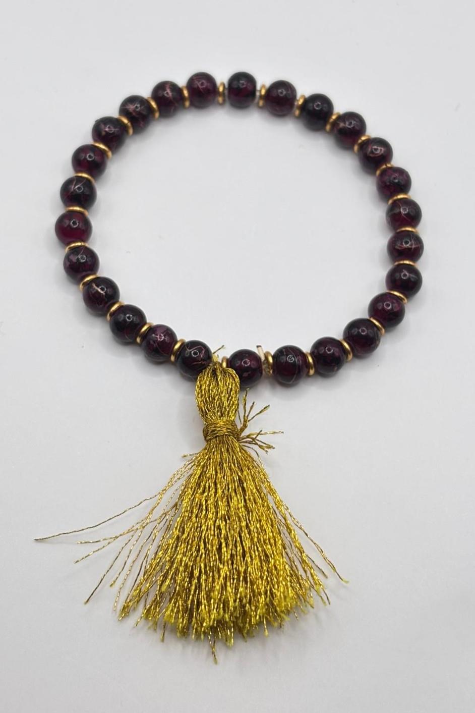 Püsküllü Doğal Taş Bileklik (K4017ES_Bordo)