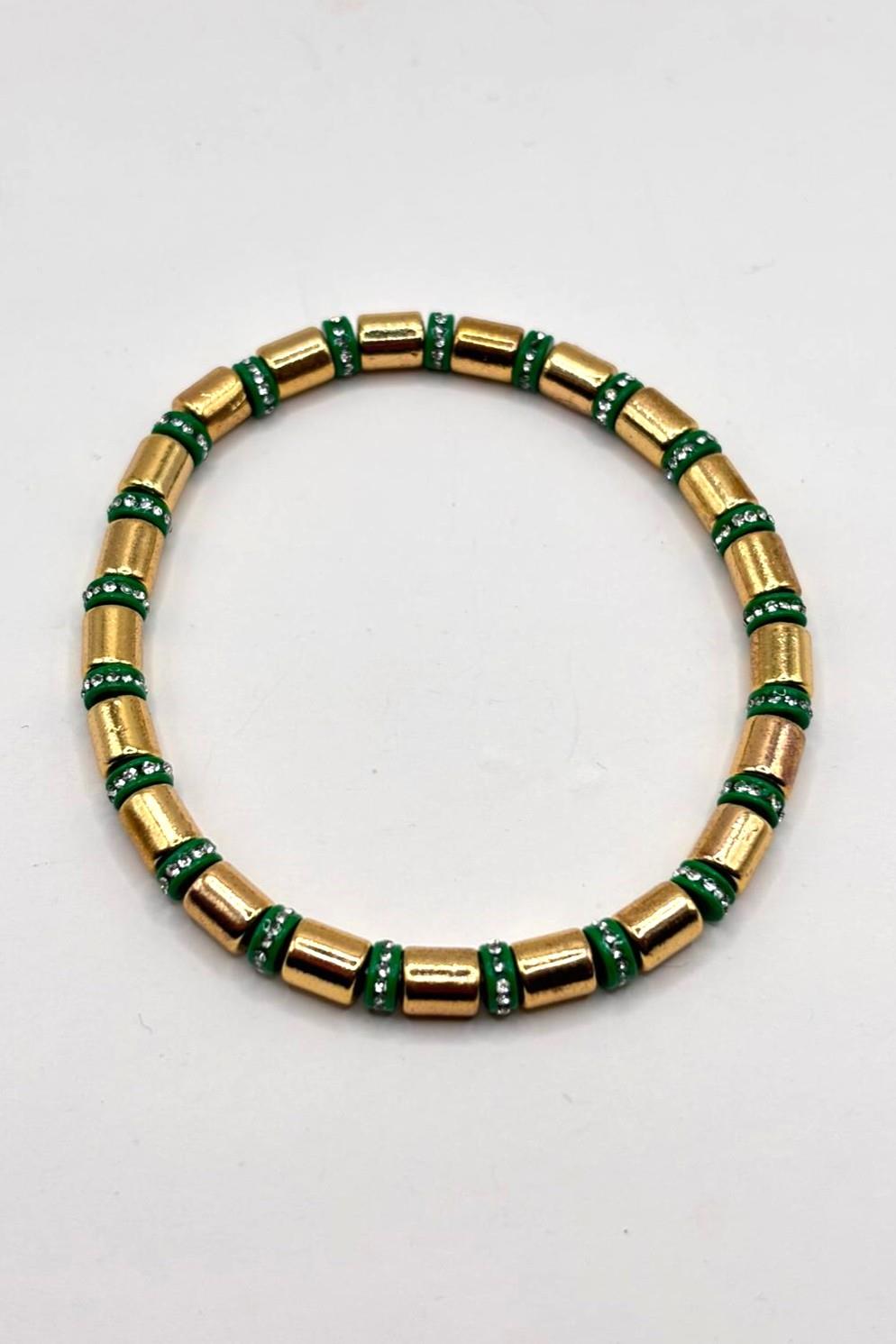Silindirik Rodyum Esnek Bileklik (K4005ES_Yeşil)