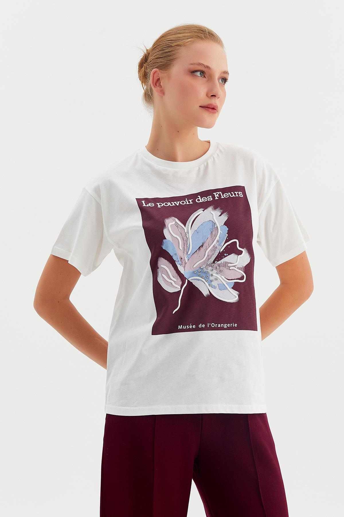 Taşlı Çiçek Desenli Tişört (80223_Mürdüm)