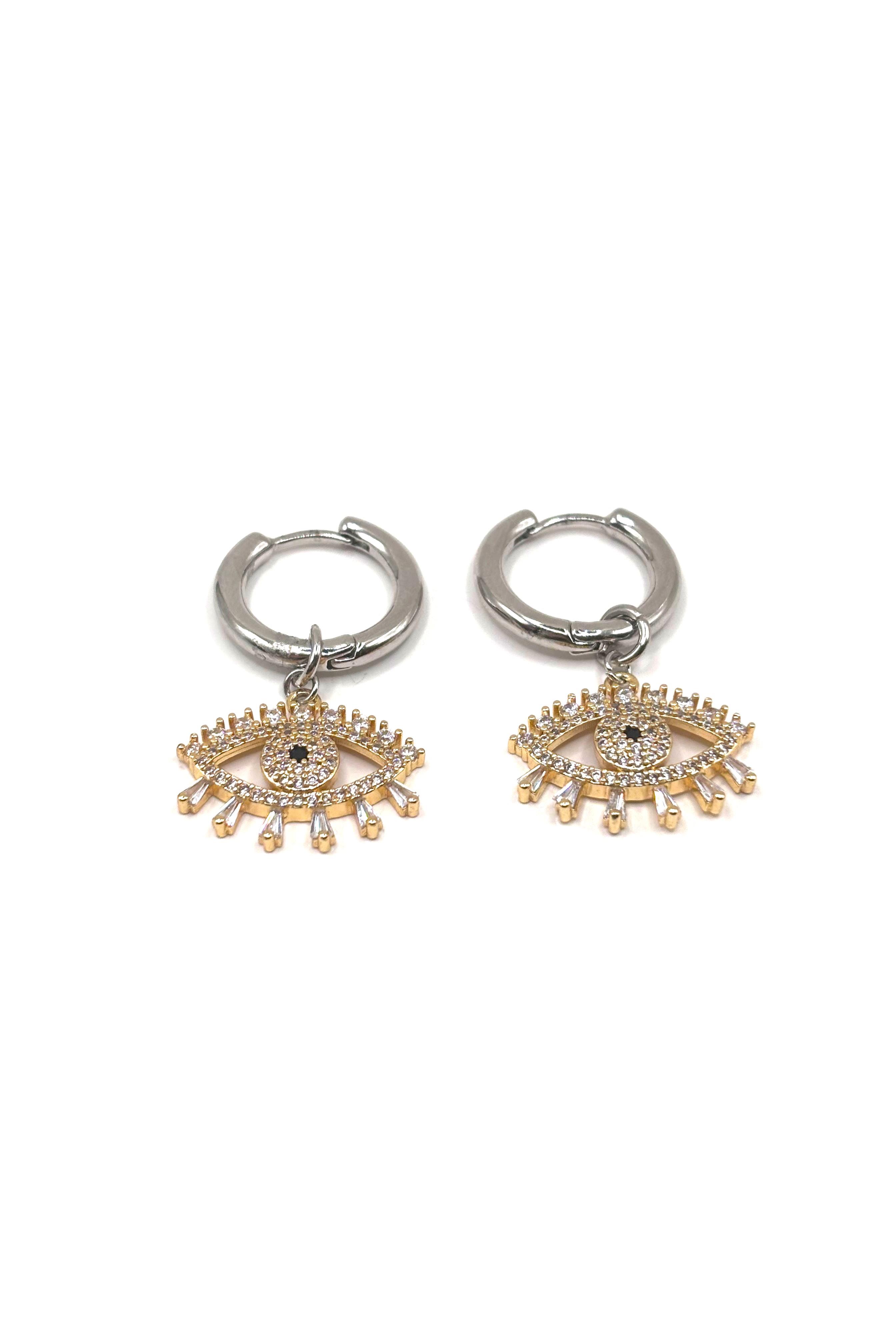 Taşlı Göz Halka Küpe (E1938MA_Gümüş)